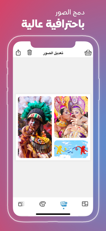 برنامج يمكنك من دمج الصور في اطارات بسهولة. يمكنك ايضا من اضافة عدد كبير من الفلاتر والتأثيرات المختلفة بالاضافة الى وضع الملصقات والكتابة على الصور قبل او بعد دمجها.
